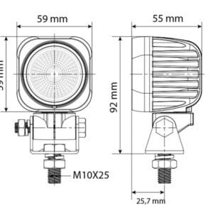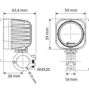 Kirjeldus: 1 x LED, 360° pööratav kinnitus M10 kinnitusega (kogukõrgus 92 mm) ja torukinnitus (ø 22–25 mm, kogukõrgus 100 mm) kaasas